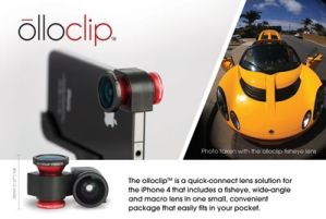The olloclip is a quick-connect lens solution for the iPhone 4 & 4S that includes Fisheye, Wide-angle and Macro lenses in one small, convenient package that easily fits in your pocket. Nestled in the palm of your hand, the olloclip connects to the iPhone within seconds so youll be sure to capture the image you wantif you dont see the picture youre looking for, just flip it over to switch lenses.