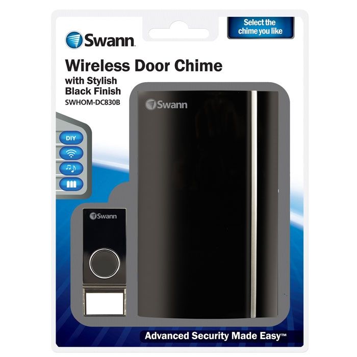 Swann DC830B Wireless Door Chime with Extra Volume - Easy DIY Completely Wireless Installation, Transmits Wirelessly Up to 300FT/100M+, 32 Selectable Chimes - Stylish Black
