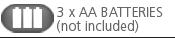 AA Batteries x 3 (not included)