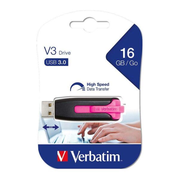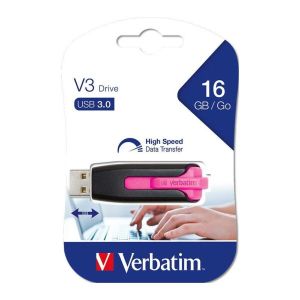 Verbatim Store 'n' Go® V3 USB 3.0 Drive - 16GB - Black/Pink