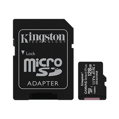 Kingston 128GB Canvas Select Plus MicroSD - Single Pack - Class 10, UHS-I speeds, 100MB/s Read - Black