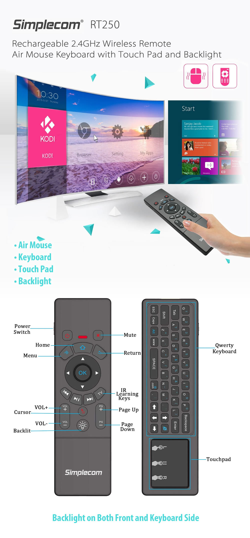 RT250 is a 3-In-1 universal 2.4G wireless remote control with the combination