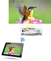 Wirelessly display content from your iOS or Android mobile devices as well as PCs, including Chromebook with the free Epson iProjection App. Easily share information on the big image from up to 4 connected devices simultaneously. Just turn on the projector, use the Epson iProjection app to scan the on-screen QR code, and share content on the big screen. This free application allows you to travel light and present from your mobile device.