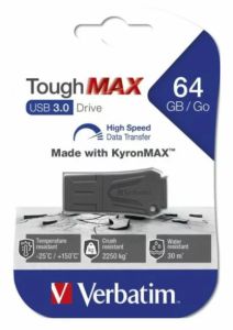 The Verbatim ToughMAX USB Drive is made with KyronMAX™compounds, a metal replacement thermoplastic material which is able to withstand seriously punishing conditions and has been used in the most demanding of applications from fighter jets to mountain bikes. KyronMAX™ compounds are extremely light and tough, making it a wonderful USB enclosure material that will resist virtually everything and keep your data safe from any physical damage.