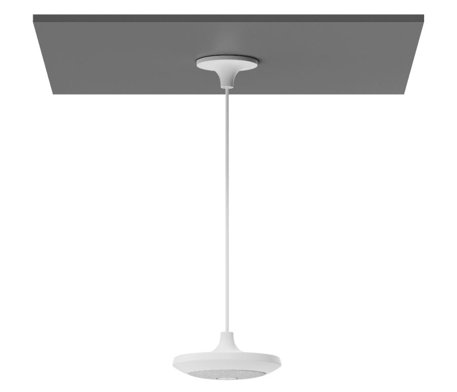 Ceiling pendant mount for Rally Mic Pod microphones.