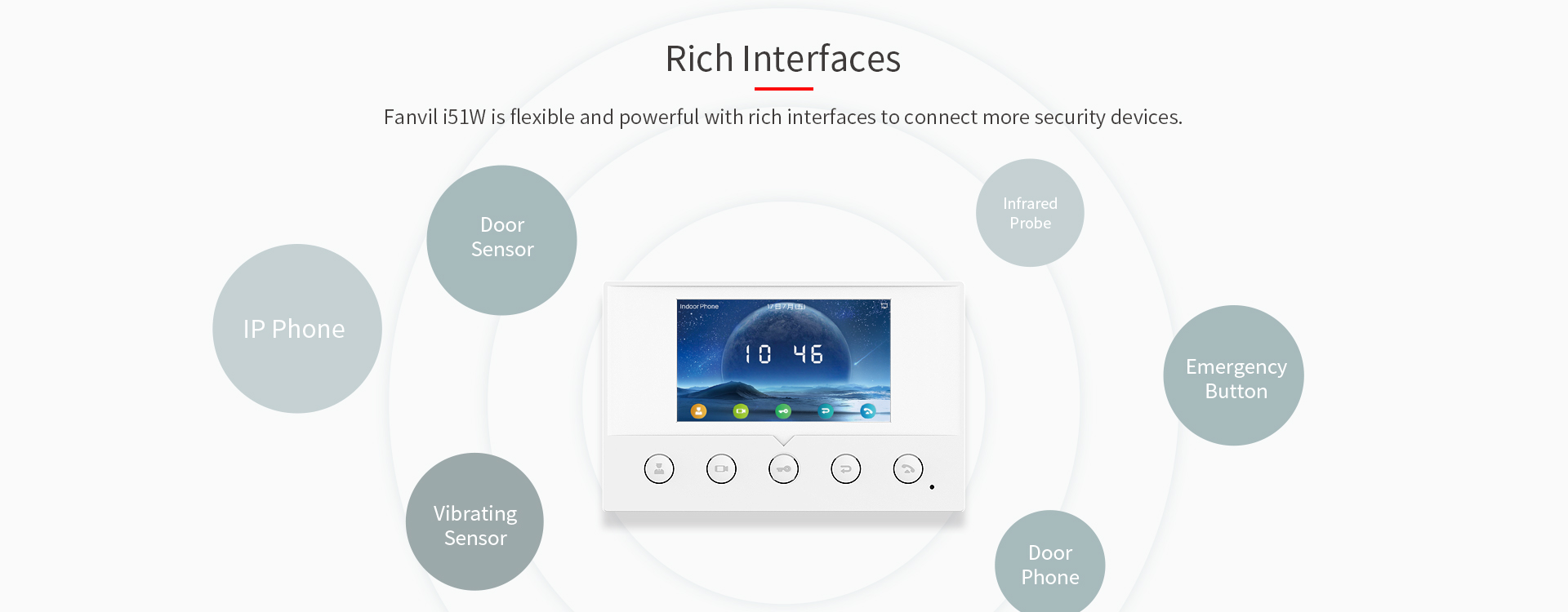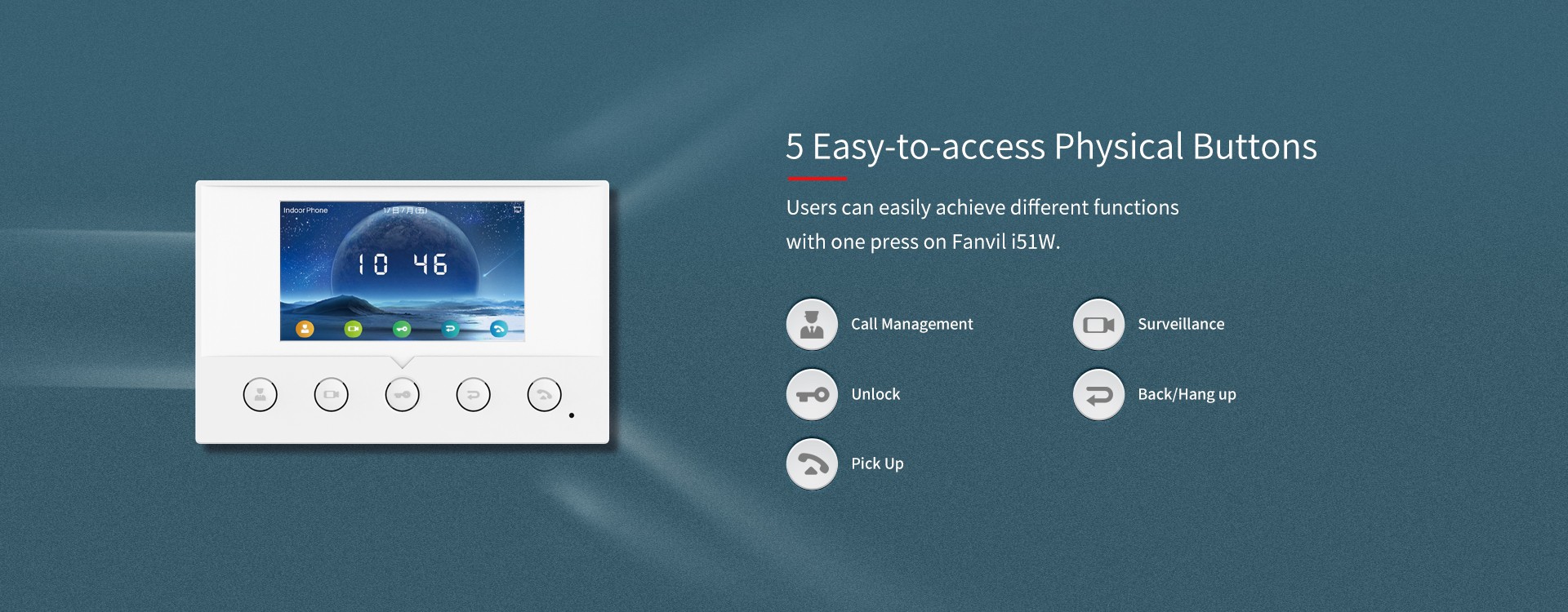Fanvil i51W Indoor SIP Station, 4 SIP Lines, 5 Buttons, PoE, 4.3" Colour Screen, Linux, ONVIF