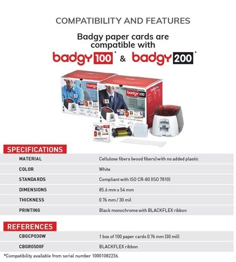 Compatible with Badgy100 and Badgy200 Printers from serial number 10001082236 onwards
