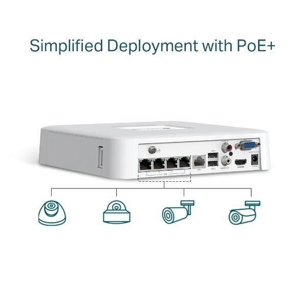 TP-Link VIGI NVR1104H-4P 4 Channel PoE+ Network Video Recorder, 24/7 Continuous Recording, 4K HDMI Video Output & 16MP Decoding Capacity (LD)
