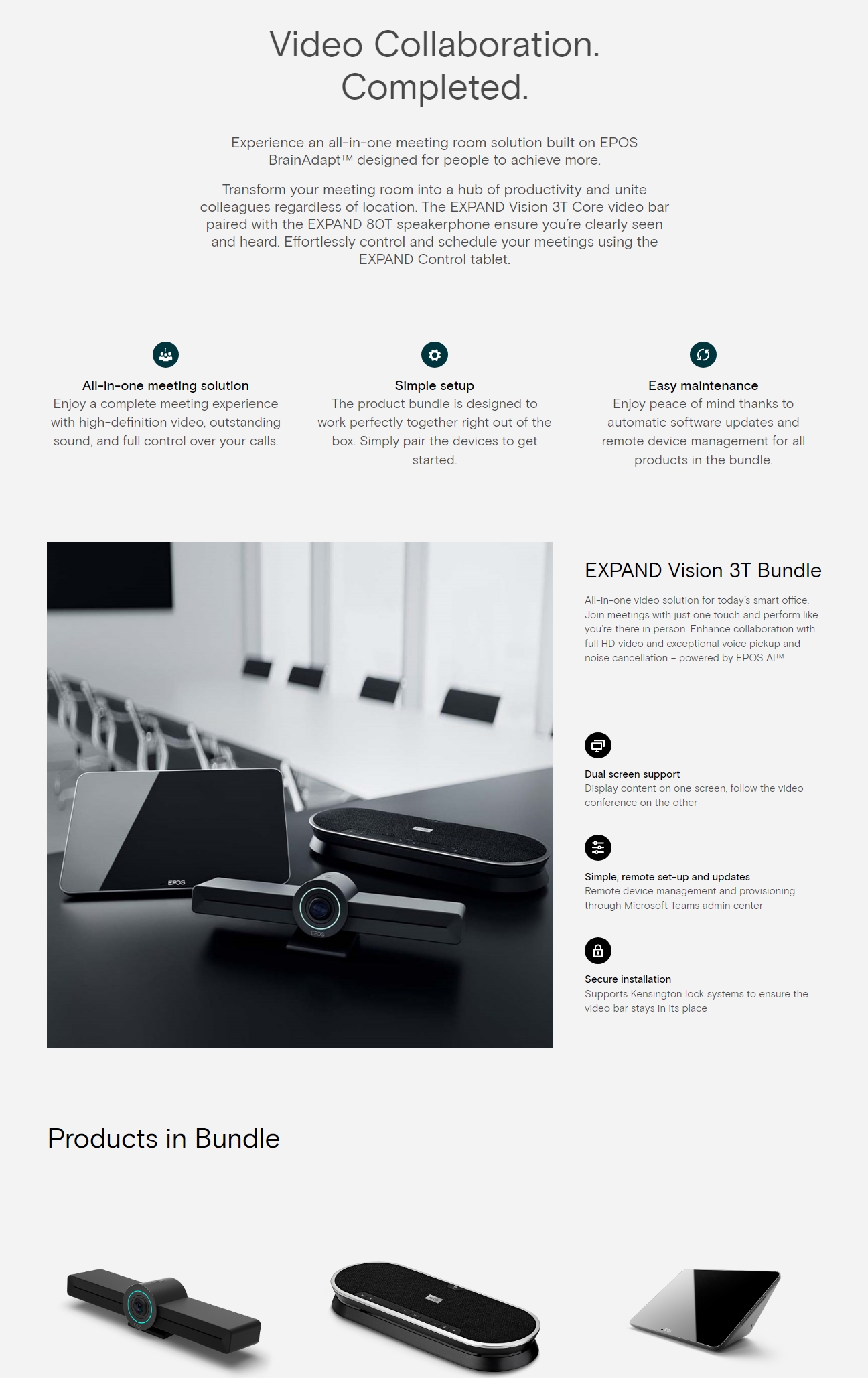EPOS EXPAND Vision 3T Bundle - AIO video collaboration bundle for MTR on Android Incl. EXPAND Vision 3T Core, EXPAND Control & EXPAND 80T