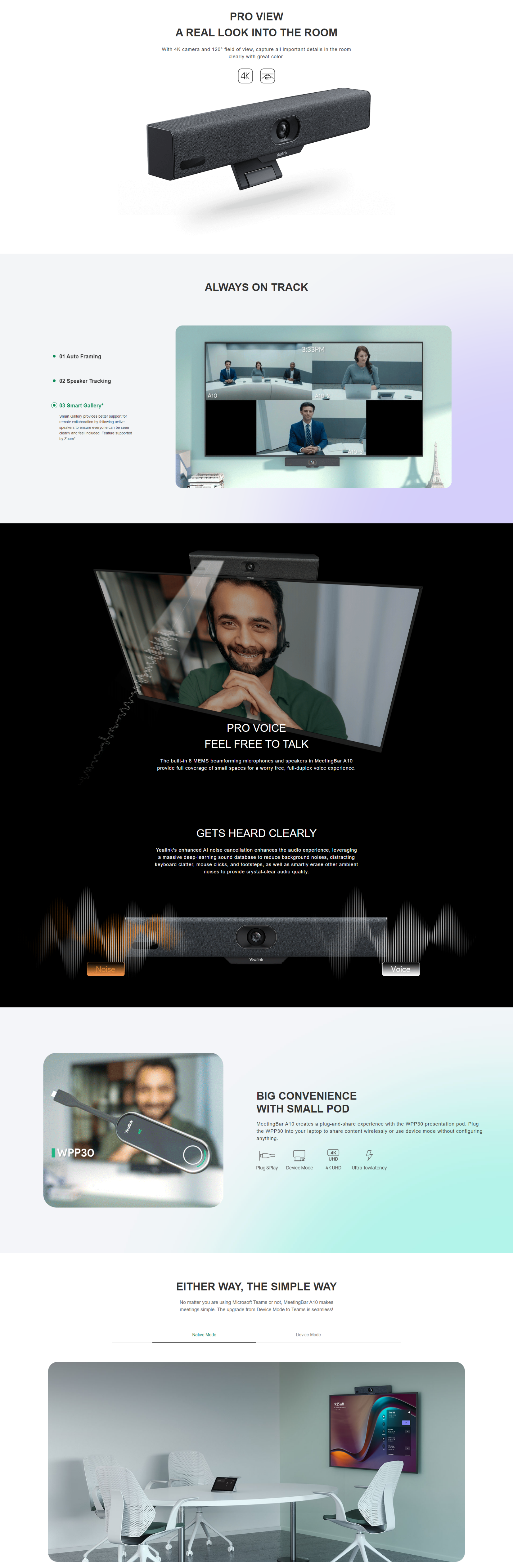 With its easy-to-use interface and advanced features, the A10 MeetingBar is perfect for small groups or individual users looking for a powerful conferencing solution.