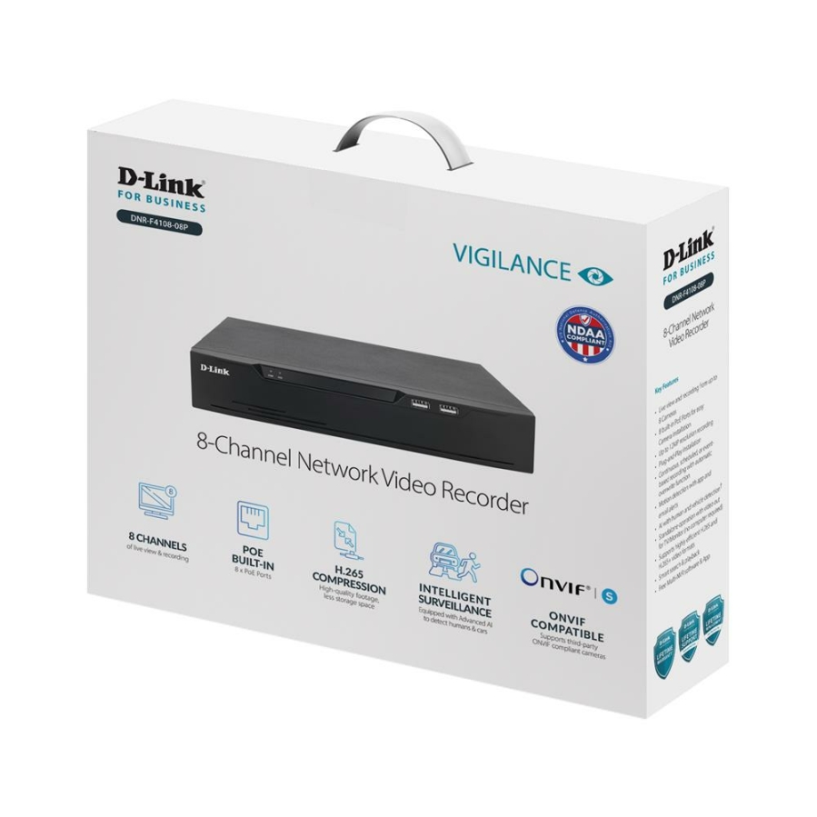NDAA Compliant Cameras and NVRsSecurity and privacy matters. The components used in D-Link Vigilance Cameras and Network Video Recorders are carefully selected and stringently tested against standards in production. NDAA (National Defense Authorization Act) is a U.S. law that bans certain products from being used by the government or its contractors. NDAA Compliant means D-Link Vigilance Surveillance Products do not contain components from banned companies that present a security threat.