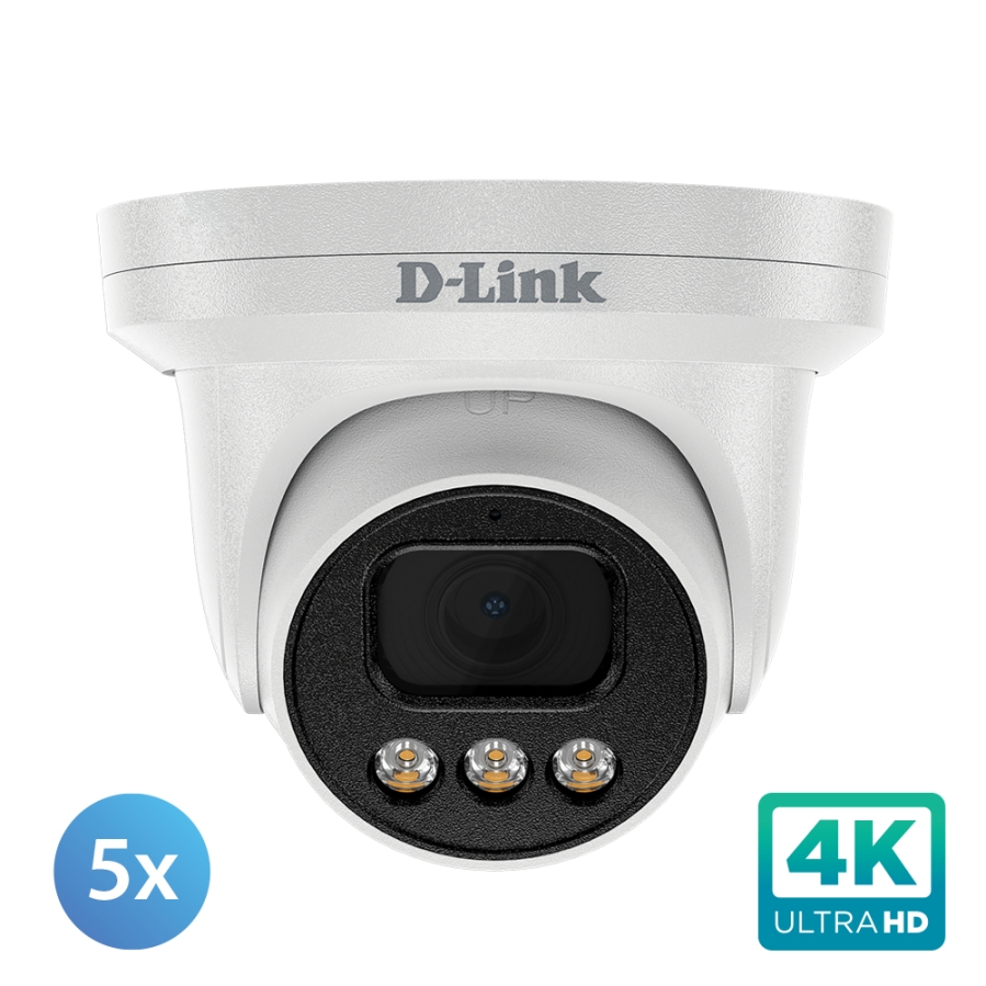 Reliable, Rugged 24-Hour Surveillance Solutions with Advanced Features that Safeguard Your BusinessThe DNR8P-8MP-4TB Vigilance Surveillance Kit includes 5 x DCS-F4808E Vigilance 8-Megapixel Vandal-Proof Outdoor Dome Cameras, as well as an 8 Channel AI-Enabled NVR, offering a high-definition professional surveillance and security solution suitable for small, medium, and large enterprises. The Cameras use a high-sensitivity 8-megapixel progressive scan CMOS sensor to deliver truly superior quality video, day and night. With an all-in-one rugged design, the DCS-F4808E cameras can be deployed reliably without the need for additional accessories.