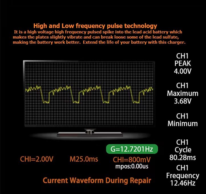 What it does is simply put high voltage high frequency spikes into the lead acid battery which makes the plates slightly vibrate which can break loose some of the lead sulfate which makes it work better.