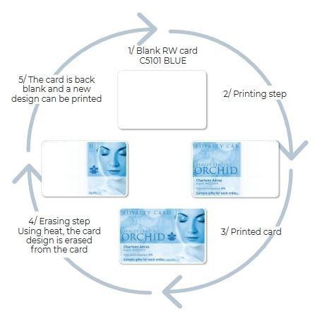 The rewritable printing technology does not require any ribbon to personalize cards. The card itself