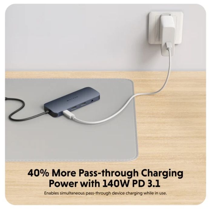 Power and charge your devices while using the hub, ensuring uninterrupted productivity, and eliminating the need for separate chargers, making it ideal for power-hungry devices and busy professionals on the go.
