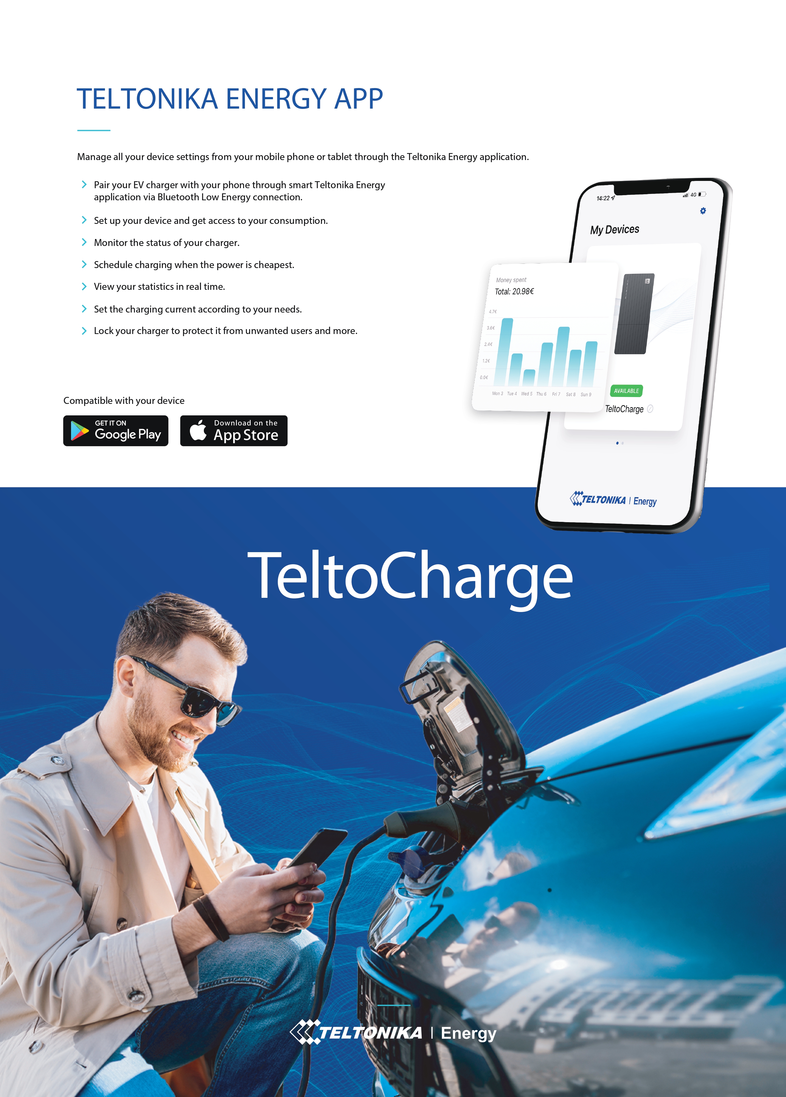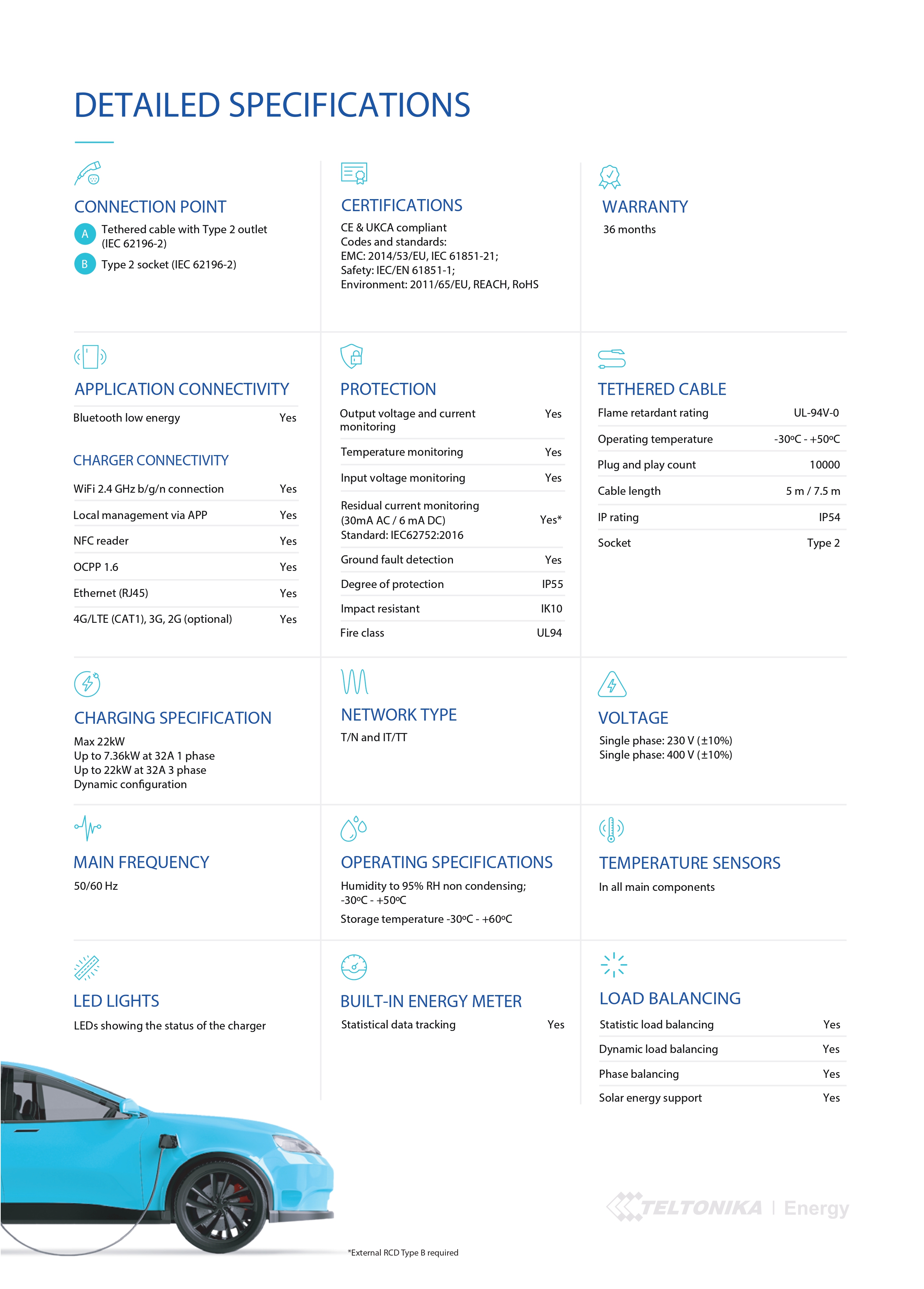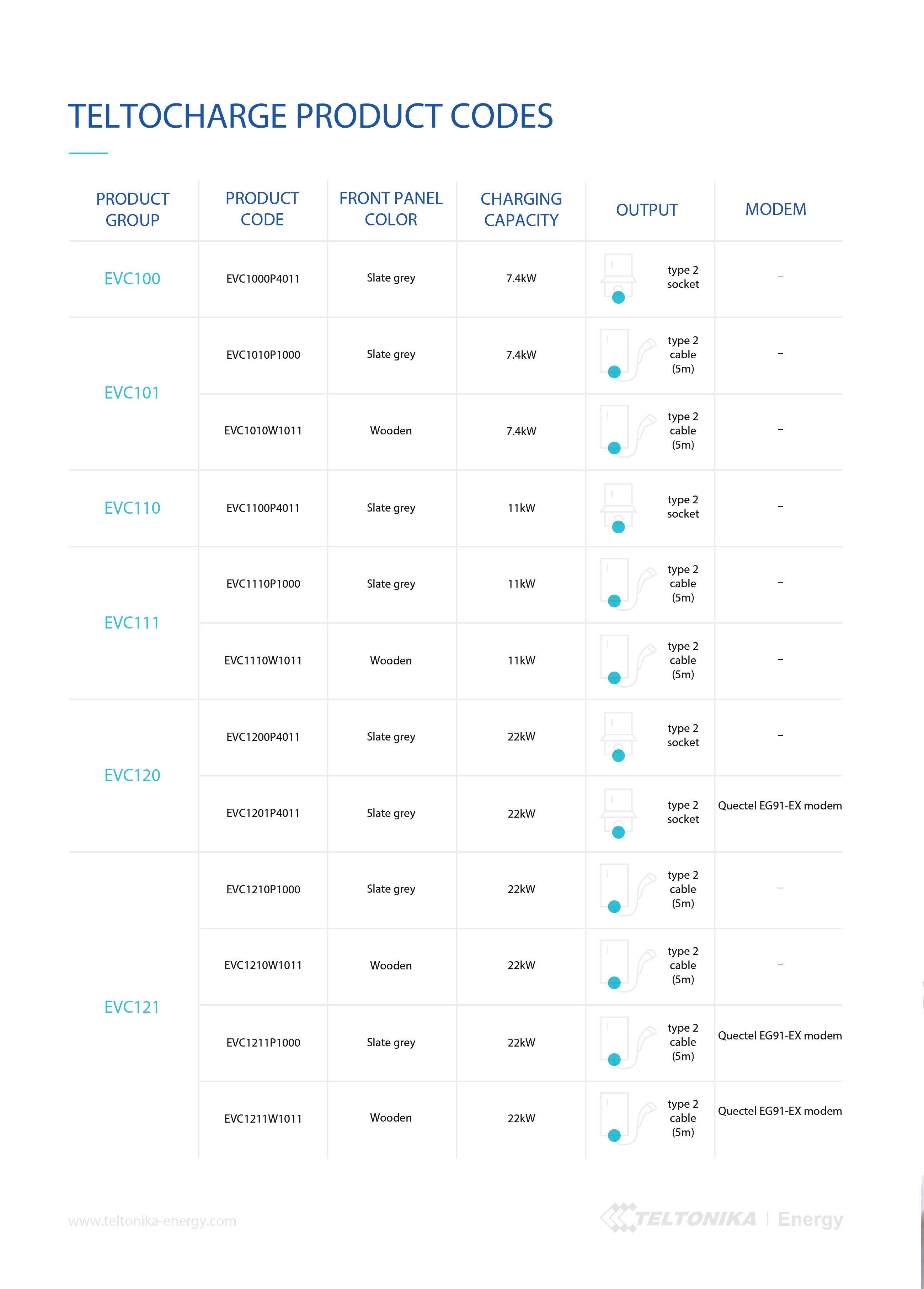 Teltonika Teltocharge EVC101 Slate Grey 7.4kw EV Charger with Type 2 Cable (5m)