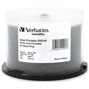 Verbatim DVD+R 4.7GB/16X - 50 Pack Spindle, White Wide Inkjet Printable